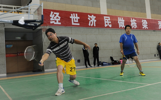 贵大新闻网讯(校工会文体部供稿/图 陈恒摄)为了积极响应国家全民健身活动,10月15至16日,由校工会举办的贵州大学2016年教职工羽毛球比赛在我校北校区体育馆。经过两天的紧张激烈的比赛,管理学院、体育学院荣获第一名,外国语学院荣获第二名,计算机科学与技术学院、电气工程学院并列第三名。