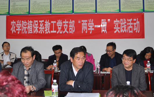 贵大新闻网讯(记者 尹梓熹)10月20日下午,校党委书记陈坚、副校长金道超赴修文县洒坪乡猕猴桃基地调研。调研结束后,农学院植保系党支部在洒坪乡猕猴桃基地会议室召开组织生活会,陈坚为植保系党支部党员作“两学一做”学习教育党课辅导。