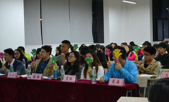 化学与化工学院院党委副书记杨静、学生科老师刘林及各学院学生会主席、副主席参加本次比赛。20位大众评审团成员由14、15届各班学习委员组成。通过复赛选拔,此次竞赛决赛共有七支队伍参加。比赛由抢答竞赛、感悟发言战及附加题三个环节组成。