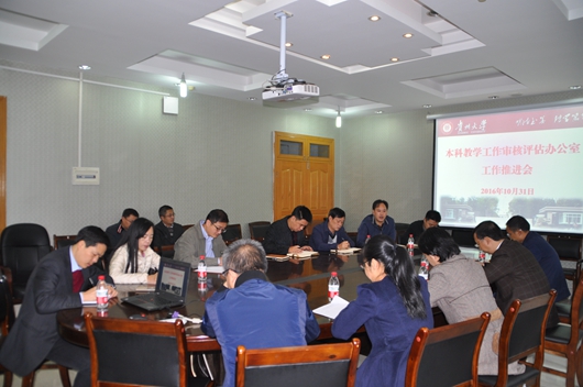 贵大新闻网讯(文/图 刘文科)10月31日上午,本科教学工作审核评估办公室主任、教务处处长邓朝勇在二号行政楼第四会议室主持召开审核评估办公室工作推进会,审核评估办公室相关人员参加会议。