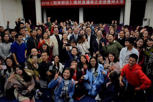 贵大记者团讯(记者团 周佳颖 实习记者 唐嵩涛 吴培贵 报道|摄影 周佳颖)为进一步提升我校学生的综合素质,提高毕业生就业质量,11月10日晚,《职来职往》栏目嘉宾岳成律师事务所高级合伙人岳屾山、华图教育高级副总裁于洪泽、社科赛斯教育集团董事长甄诚到我校北校区一号行政楼学术报告厅进行就业指导宣讲。校党委副书记杨未出席,相关职能部门负责人参加活动。
