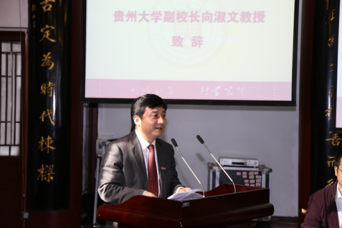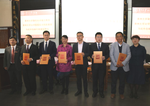 向淑文副校长致辞。他代表学校向各位校外导师表示热烈的欢迎和衷心的感谢,并向与会嘉宾介绍了贵州大学的发展历程。他指出,法学是“学以致用,勤以弘道”之学问,法律人才必须注重实务能力的培养,而实务能力的培养需要各界法律人士的鼎力支持,我校法律人才的培养水平必须与时俱进,校外导师的聘任对于提升我校法律人才培养质量是一个崭新的契机。