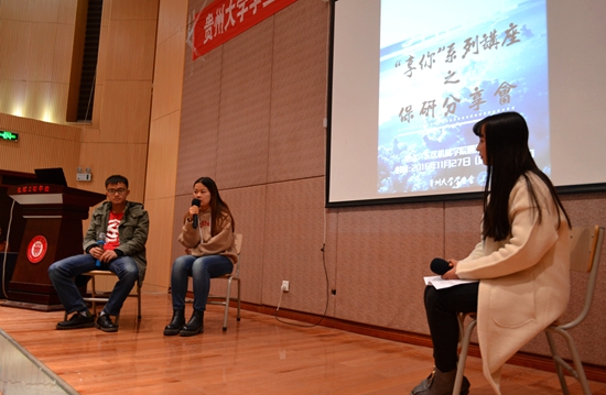 “我们举办此次讲座目的在于给同学们搭建一个平台,让他们与优秀的学长学姐进行交流,让他们能对于保研有更多的了解,从而对于自己的学习与生活有更好的规划。”贵州大学学生会学习部部长吴亚林表示。