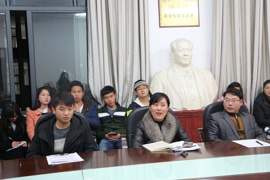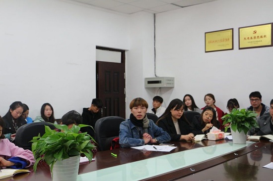 贵大新闻网讯(药学院新闻中心 胡丽 胡清秀 摄影报道) 12月16日晚,药学院全体学生干部在新校区崇义楼418室开展了学习习近平总书记在全国高校思想政治工作上重要讲话精神的专题,院党委副书记张豫芳、学生科负责人、院团委书记戴隆满出席,院团委、学生会、新闻中心、青年志愿者协会、艺术团副部级以上干部、各班班长、团支书共50余人参加。院团委副书记张娇主持本次会议。