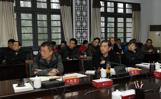 贵大新闻网讯(记者 龙晓雪 摄影 陈恒)3月17日上午,校党委中心组在行政楼第一会议室召开2017年第3次理论学习(扩大)会议。校领导陈坚、宋宝安、王红蕾、杨伟民、金道超、汪海波、谢田凯出席会议,校党委委员、各基层党委书记、党群部门主要负责人以及相关单位负责人参加会议。校党委书记陈坚主持会议。