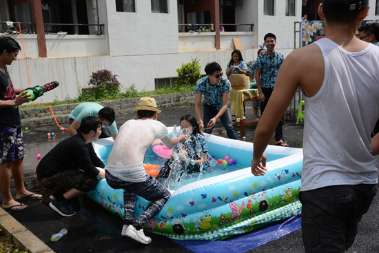 美食环节中,柬埔寨、老挝、泰国这三个国家极具异域风情的美食也吸引了不少观众,其中柬埔寨式咖啡、老挝米线、泰式炒河粉等美食备受好评。泼水活动中,留学生用水枪、水桶、水球甚至充气游泳池互相泼水表达对他人的祝福,场面热闹不已。