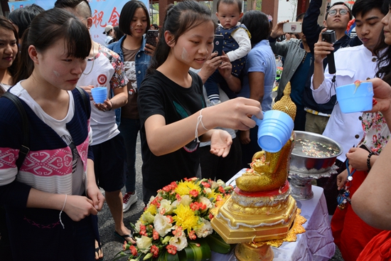 三个国家先后举行新年祝福仪式,柬埔寨的堆沙仪式、老挝的拴线祝福仪式以及泰国的浴佛仪式,并邀请在场观众一起参与接受祝福。三个国家也分别带来富有特色的文艺表演,柬埔寨传统舞蹈《RobamTrod》以神话与情景表演融为一体,表达对新年的祝福;老挝传统舞蹈《祝新年快乐》用温柔美丽的动作来体现老挝人的传统习俗;泰国留学生以一首快节奏的舞蹈《我爱泰国》,让大家了解到新时代泰国的文化。表演最后,柬埔寨带来本国的《Romvong》、《Romkbach》等社交舞蹈,表演过程中观众们也积极参与其中,一同庆祝佛历新年。