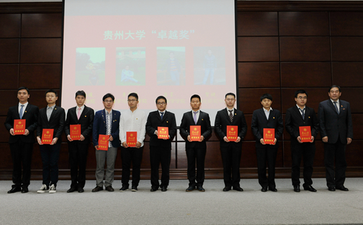 常务副校长王红蕾宣读表彰决定。授予肖旭等10名同学贵州大学“十佳大学生”(综合称号)荣誉称号;授予经济学院团委等6个单位“五四红旗团委”荣誉称号;授予韦伊等9名同志“优秀团务工作者”荣誉称号;授予王万发等10名同学“十佳研究生”荣誉称号;授予贺健等10名同学“卓越奖”;对荣获省级三好学生的洪叶等87名同学予以表彰;对荣获省级优秀学生干部的廖冬琼等30名同学予以表彰;对荣获省级先进班集体的应用化学141班等5个班集体予以表彰;对荣获宝钢优秀学生奖的王力北等5名同学予以表彰。出席会议的校领导为获奖代表颁奖。
