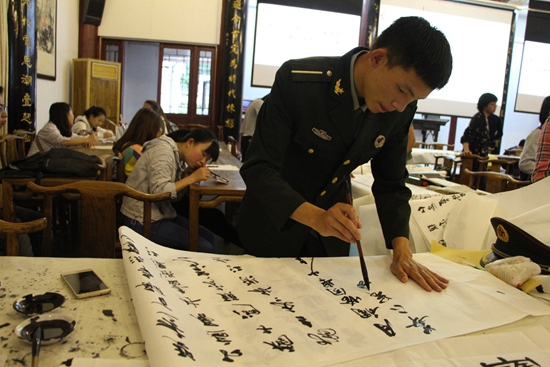 贵大新闻网讯(记者团 李丽芬 报道|摄影 王清豪)为激发同学们对中华文化的热爱,营造浓厚的校园文化气氛,5月14日,由共青团贵州大学委员会、中国文化书院主办,书法协会承办的第三届“翰墨飘香”软硬笔现场书法比赛在北校区中国文化书院举行。