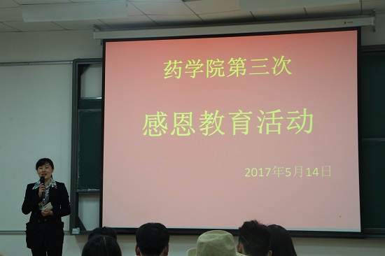 贵大新闻网讯 (药学院新闻中心 符皖 报道|摄影 胡丽) 为了让同学们充分意识到感恩的重要性,进一步培养同学们的感恩意识,药学院在5月14日母亲节当天于新校区北楼138教室举办了第三次感恩教育活动。院党委副书记张豫芳,院学生科负责人、院团委书记戴隆满出席本次活动,学院150余名同学参加了本次活动。活动由院团委素拓实践部部长贾珊珊主持。