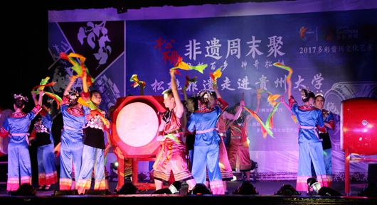 贵大新闻网讯(记者团 姜应春 杨雅心 报道|摄影 徐猛)6月4日上午,“2017多彩贵州文化艺术节非遗周末聚——绝技苗乡 神奇松桃周末聚”系列活动走进贵大校园。