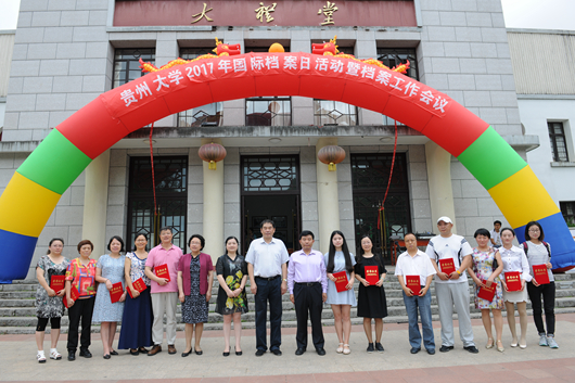 贵大新闻网讯(实习记者 车龙欢 摄影 陈恒)6月9日上午,贵州大学档案馆(校史馆)在大礼堂前举办了以“档案——我们共同的记忆”为主题的2017国际档案日宣传活动暨档案工作会议系列活动。校党委书记陈坚,校党委副书记骆长江、杨未,副校长张覃出席,全校专兼职档案工作者以及校史馆讲解员参加活动。