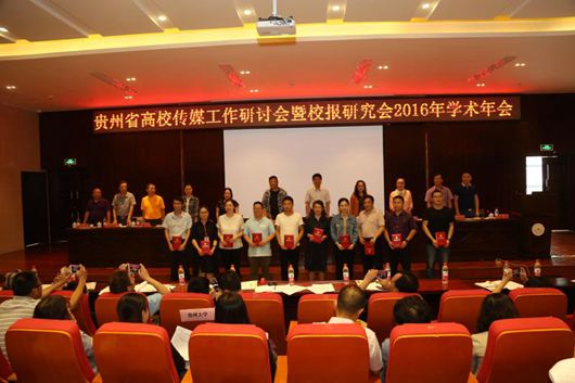 贵大新闻网讯(记者 庞爱忠)贵州省高校传媒工作研讨会暨校报研究会2016年年会6月23日在贵州医科大学举行。省委教育工委副书记赵廷昌,贵州医科大学党委副书记吕保平等出席会议。会议对2016年贵州省高校校报好新闻奖作了表彰,我校7件作品获2016年贵州省高校校报好新闻奖,其中一等奖1项,二等奖3项,三等奖1项。