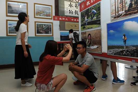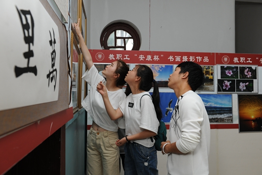 贵大新闻网讯(实习记者 唐国飞/陈恒 摄)为了更好地展现我校教职工的风采,传递爱党敬业正能量。7月2日,校工会在大礼堂前举办了贵州大学教职工“安康杯”书画摄影展。