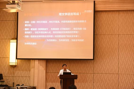 北京邮电大学灾备技术国家工程重点实验室主任、公共大数据国家重点实验室(筹)主任杨义先以信息安全的独到见解和敏锐开阔的思维,揭示了安全、攻防、黑客和红客的实质。西安电子科技大学的特聘教授马建峰就《基于网络融合的集成安全架构》进行了主题演讲。他说,下一代网络系统面临着来自网络、数据及应用多个方面的安全挑战,需要对下一代网络中的网络、数据及应用安全进行综合考虑,才能形成网络、数据及应用一体化综合安全防护体系。贵州省公共大数据重点实验室常务副主任、省大数据产业发展应用研究院副院长彭长根认为,大数据已成为贵州一张新名片。他说道:“公共大数据,是取之于民,用之于民的开放共享,没有开放共享就没有大数据的应用。贵州对公共大数据的应用尝试,是兵马未动,粮草先行的实践举措。”