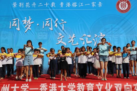 贵大新闻网讯(赵心悦 摄影报道)7月23日下午,“同梦·同行”贵州大学——香港大学教育文化双向交流活动文艺汇演在寨蒿镇太平小学操场举行。榕江县委常委、宣传部部长龙胜能,副县长、教育局局长陈尚京等相关领导,我校党委宣传部部长杨楠、历史与民族文化学院院长张清等相关部门负责人出席文艺汇演现场。
