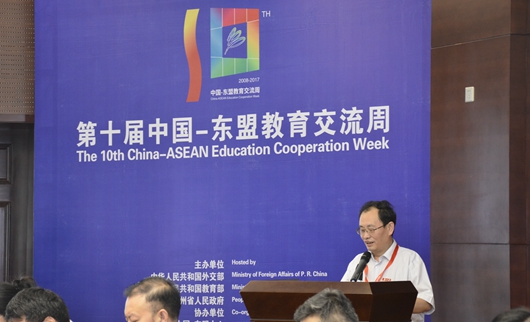 贵州大学副校长金道超致辞。他表示,中国-东盟教育培训联盟的成立为建立中国-东盟教育培训提供长效机制,深入推进人文交流与合作,实现资源共享、互利共赢提供了良好的沟通平台,为再一次聚首贵阳共商教育发展大计创造了契机。加强和发展中国-东盟教育培训工作,能更好地促进教育水平提升,培养更多优秀人才,助力双方经济社会发展,相信在大家共同的努力下,此次年会将取得更多成果。