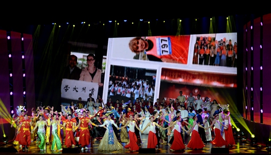 贵大新闻网讯(文字 记者团 郭丽 摄影 武敏)7月27日,以“十年教育同携手,一带一路新篇”为主题的中国-东盟教育交流周十周年庆典晚会在贵州师范大学礼堂(花溪大学城校区)举行。我校学子参与表演歌舞节目《东方神韵》,演唱歌曲《爱因为在心中》。