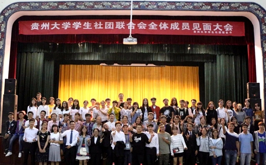 贵大新闻网讯(学生社团联合会 国金文 报道|摄影 杨胜)9月29日晚,我校学生社团联合会新老成员见面大会在北校区大礼堂举行。校团委副书记廖烨、社联指导老师廖银以及社联新老成员400余人参加。