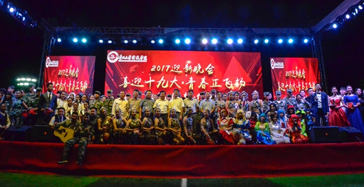 贵大新闻网讯(科技学院 记者 谭文霞 摄影 王天祥 邹远伟 王玥 姜慧钰)9月26日晚7点,以“喜迎十九大•青春正飞扬”为主题的科技学院2017级新生迎新晚会在科技学院惠水校区足球场隆重举行。