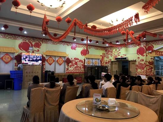 贵大新闻网讯(后勤集团 毛朝松 报道|摄影 王忠阳)10月18日上午,按照学校要求,后勤服务集团积极组织各部门采取各种形式,通过各种渠道收听收看党的十九大开幕会;各校区食堂全面开通电视直播,方便广大学生观看学习。