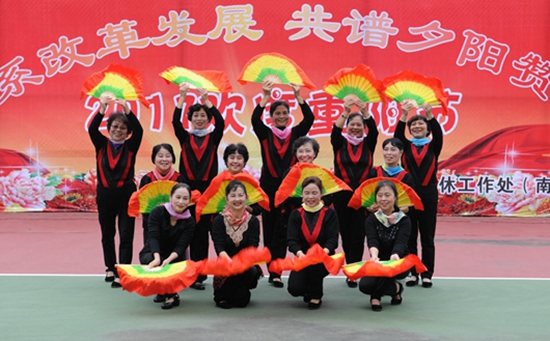 此次文艺表演包括民乐合奏、时装表演、舞蹈、诗朗诵、歌曲等15个节目。节目全部由我校离退休老职工组织并参与演出。秋意渐浓,却不减各位老职工参与文艺表演的热情。身着旗袍,手举纸伞,随音乐翩跹起舞,各位表演者姿态婀娜,《苏州的月亮》时装表演让观众纷纷举起手中的照相设备;“咚咚咚”老阿姨们踏着铿锵的鼓点,为大家表演舞蹈《太阳鼓》,苗族头饰在阳光下闪烁着银光,随表演者的起舞漱漱作响,色彩斑斓的民族服饰,精致的妆容,富有民族特色的表演连获喝彩。