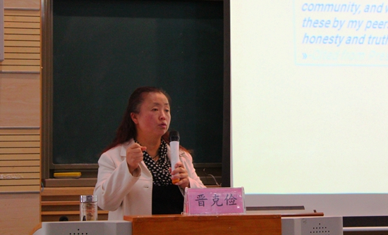 讲座最后,晋克俭谈起大学英文的学习,“同学们经过了这么多年的英文学习,基础其实已经足够了,需要的是学会使用英文。”她认为同学们应该脱离应试教育的影响,思考一下学习英语的意义是什么,不要只是机械的读和背,要多利用网络学习工具,学会如何使用这门语言。