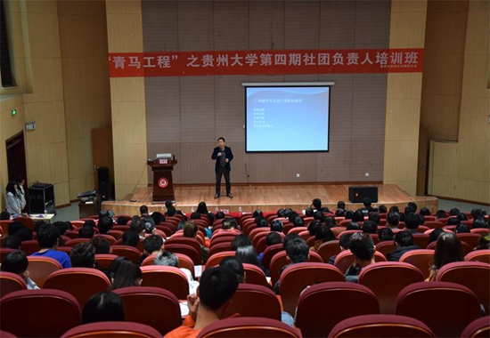 开班仪式后,金春雷详细为大家介绍共青团、学生会和社团的地位以及它们的功能、特点和作用,并就 “如何做好一名学生社团干部” 为社团负责人解答疑问。“贵州大学的103个社团丰富了校园文化建设,丰富了第二课堂,推进了学习气氛。”他希望大家都能做好一名学生社团干部,为社团贡献自己的一份力量。