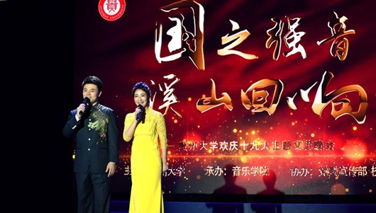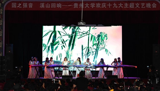 11月1日晚,为进一步认真传达、学习、贯彻、落实中国共产党第十九次全国代表大会精神,贵州大学举办了“国之强音 溪山回响”——贵州大学欢庆中国共产党第十九次全国代表大会主题文艺晚会,千余名师生观看了演出。(图/陈恒)