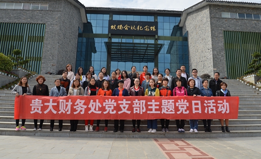 贵大新闻网讯(财务处 供稿)11月3日,财务处全体职工、后勤管理处党支部、建行花溪支行公司部分党员赴瓮安猴场会议会址开展以“不忘初心,牢记使命”为主题的党支部主题党日,重温党的历史。