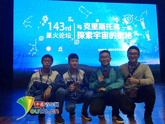 图为游学团成员在清华大学参加克里斯托弗演讲并合影。贵州大学研支团 供图