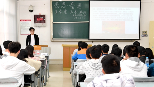 他指出,同学们作为热血青年,要用自己的青春、智慧和力量为国家发展做贡献。作为21世纪,特别是新时代的大学生,要努力走“又红又专”的道路。在学好专业知识的同时,努力学习政治理论,学习好、贯彻好、落实好党的十九大精神,努力成为德智体美全面发展的社会主义事业合格建设者和可靠接班人。