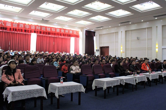 贵大新闻网讯(记者团 罗乐 实习记者 吴朝霞 赵昱 报道|摄影 张云华)11月11日,第八届世界华语辩论锦标赛贵州区决赛在我校北校区1号行政楼报告厅举行,本次比赛由南京审计大学君和思辨社主办,贵州大学团委承办。2012年苏皖赛区世锦赛冠军带队者曹顺,湖南省大众语言艺术研究会辩论委员会委员赵曜,2012年内蒙古自治区大学生辩论赛亚军、最佳辩手毛艺霖担任本次大赛评委。