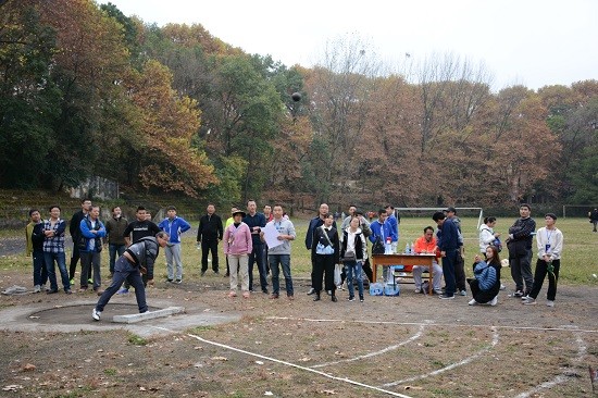 选手们早早地来到比赛现场,进行赛前热身准备,练习着投掷姿势。比赛正式开始,选手们面露笑容,全身心投入到比赛中,享受比赛带来的乐趣。不仅是参加比赛的选手,周围还有很多前来观看的同学,关注着比赛状况,不时传出加油欢呼的雀跃声。