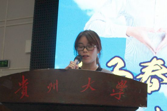 贵大新闻网讯 (记者团 李丽芬 实习记者 高舜琪 报道|摄影 丁秋瑜) 11月16日,由贵州省春晖行动发展基金会、贵州大学团委、贵阳爱尔眼科医院主办的“‘赤子春晖,共话成长路’邓楚涵公益演讲”在我校北校区一号行政楼报告厅举行,贵州省春晖行动发展基金会副秘书长班超,贵州大学阳明学院团委书记邓琳,贵阳爱尔眼科医院院长龚力力、副院长黄加兵,剑桥大学工程系在读博士爱眼公益形象大使邓楚涵参加此次演讲,贵阳广播电视台主播刘薇主持本次讲座。