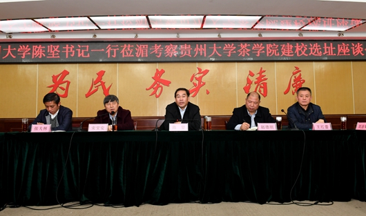 陈坚提出,校区建设尽量按照“一次规划、逐步实施”的方法推进,要将茶学院湄潭校区建设成湄潭乃至于整个贵州的招牌。赵德刚表示,省农业科学院也将为校区的建设出谋划策,提供支持。