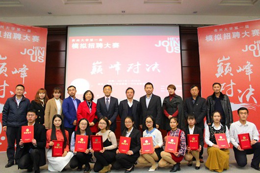 贵大记者团讯(记者团 胡明玥 实习记者 甘盼 吴朝霞 报道|摄影 石晨玉)11月30日晚,我校首届模拟招聘大赛总决赛在行政楼报告厅举行。副校长向淑文、管理学院教授林岚涛、化学与化工学院党委书记王华、招生就业处处长惠淑林及三和人力资源集团有限公司董事长戴景华等担任比赛评委。