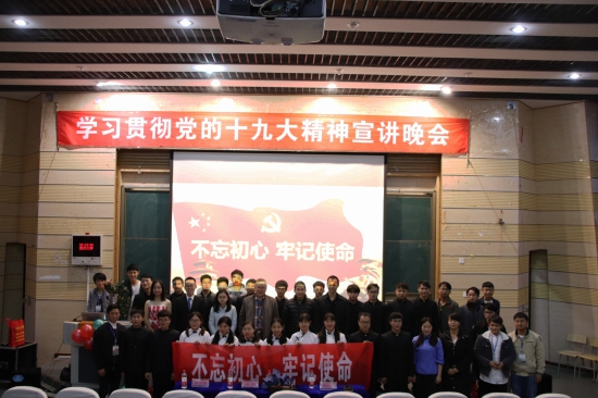 贵大新闻网讯 (记者团 江永兰 报道|摄影 杨仁发) 12月7日晚,由矿业学院主办的“不忘初心,牢记使命”学习贯彻十九大精神宣讲晚会在东校区圆形报告厅举行。矿业学院党委副书记潘琪,学院部分师生以及其他各学院团委学生会代表参加。