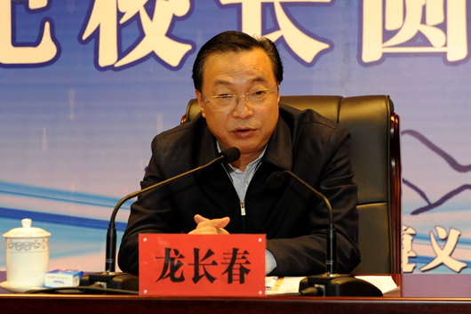 贵州省委常委、遵义市委书记龙长春发表讲话。他指出,人才匮乏是制约遵义跨越发展、后发赶超的突出瓶颈,将认真学习借鉴贵州大学等高校和各兄弟市州高校的先进经验,积极塑造独具遵义特色的高等教育品牌。要不断深化校地合作,始终坚持“地方所需、高校所能”,围绕经济社会发展的重大需求,紧盯创新驱动战略,积极支持高校开展产学研合作,完善成果推介、转化扶持等服务,努力把高校的科技优势、人才优势、智力优势转化为推动经济社会发展的强大动力。
