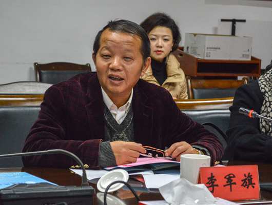 李军旗介绍了我校学科建设、学院建设和对外合作的有关情况。