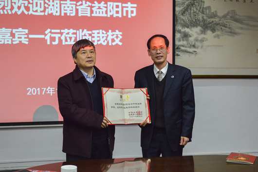 陶世群介绍了益阳市的发展情况,并向宋宝安颁发了中共益阳市委、益阳市人民政府聘请宋宝安为中共益阳市委、益阳市人民政府科技顾问的聘书。