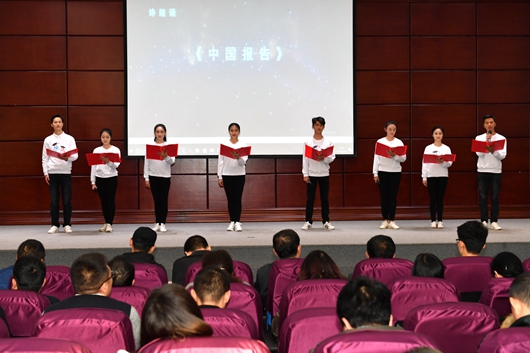 “青年之声·贵州大学”工作室、贵大图书馆官微、“材冶之声”微信公众号、“贵研新声”微信公众号分别作交流发言,展示了自己的工作成果。在慷慨激昂的诗歌《中国报告》朗诵声中,成立仪式圆满结束。