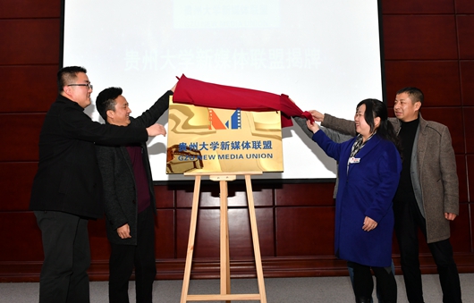 校党委宣传部部长杨楠宣读成立贵州大学新媒体联盟的文件,联盟常任理事单位代表共同为联盟揭牌。校党委宣传部副部长唐娟作贵州大学新媒体建设发展报告。