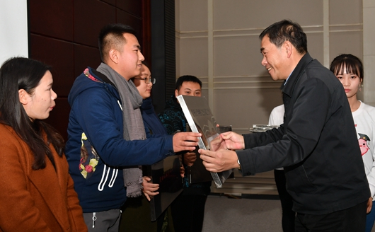 陈坚为贵州大学首批网络文化示范工作室授牌,骆长江为贵州大学2017年度十佳新媒体颁奖。