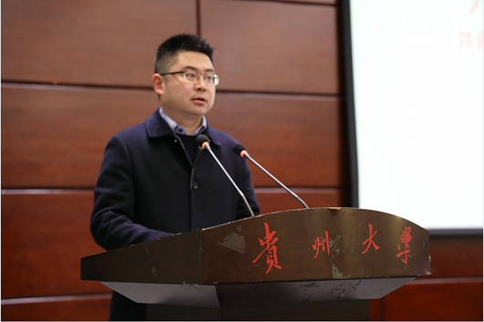 闵江涛讲话。他肯定了我校团学组织近年来取得的成绩、作出的贡献。他说,共青团贵州大学委员会和全校各级团学组织积极发扬了党有号召、团有行动的优良传统,在加强青年思想引领、组织青年服务大局、服务青年成长成才、维护青年合法权益、加强自身建设等方面取得了显著成绩,为全省高校共青团工作做出了重要贡献。