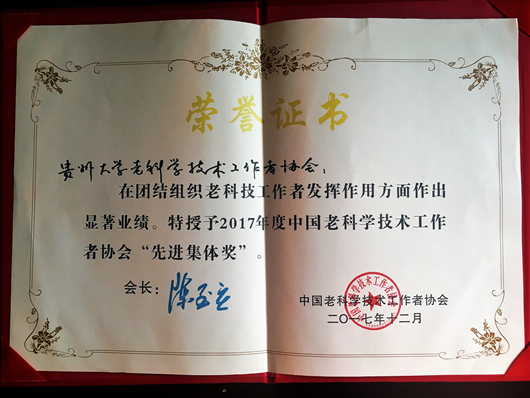 贵大新闻网讯(离退休党工委 离退休工作处供稿)2017年12月20日,中国老科学技术工作者协会表彰大会在北京中国科技会堂召开。贵州大学老科学技术工作者协会荣获全国先进集体奖。