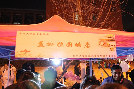 下午六点半的活动,五点过就有摊点早早过来摆摊。致达路人山人海,伴随着叫卖声,有些摊点前排起来长长的队。国际教育学院留学生之家“老挝的店”,五元1串的烤肉,不到三十分钟就售罄。“没有了,没有了”他们用不太流利的中文对慕名而来的食客连连示意。烟草学院学生会卖的鸡蛋、历史与民族文化学院学生会卖的“好望饺”、动物科学学院学生会卖的汤圆等契合“元旦”主题的食物,也是备受欢迎。