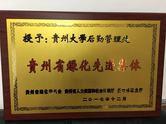贵大新闻网讯(后勤管理处 供稿)近日,省绿化委员会、省人力资源和社会保障厅、省林业厅联合下发《关于表彰贵州省绿化先进集体、先进个人和颁发贵州省绿化奖章的决定》,对在全省生态绿化建设工作中做出积极贡献的个人和县(处)级集体予以表彰。经上报材料、专家评审、现场考察等,学校后勤管理处被授予“贵州省绿化先进集体”荣誉称号。