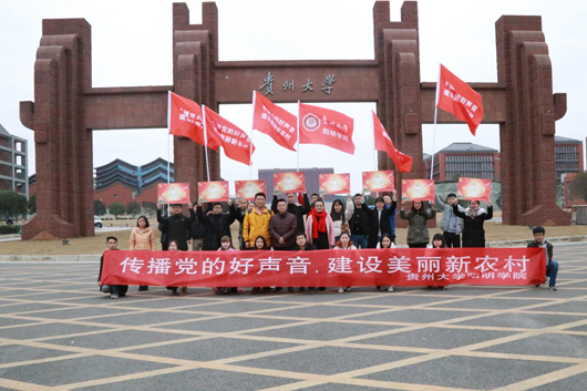 贵大新闻网讯(阳明学院供稿)1月13日上午,阳明学院“青春礼赞十九大·千支万人齐宣讲”活动暨“传播党的好声音·建设美丽新农村”寒假主题实践活动出征仪式在贵州大学新校门举行。阳明学院党委副书记李耘、宣讲团带队老师王健、罗兰及宣讲团学生共33人参加了此次出征仪式。