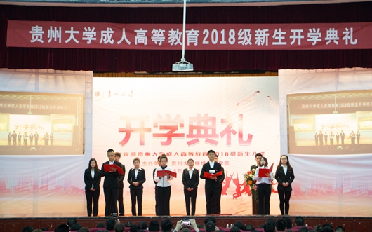 贵大新闻网讯(继续教育学院 供稿)“书香四溢大学堂,传承百年是书香”,3月18日上午,百年学府又迎来一批莘莘学子。伴随着庄严的国歌声,我校成人高等教育2018级新生开学典礼在北校区大礼堂隆重举行。副校长金道超,继续教育学院党委书记白林立、院长任康民以及学校部分教师代表和2018级新生参加了开学典礼。典礼由继续教育学院学历教育总督学喻祖胜主持。